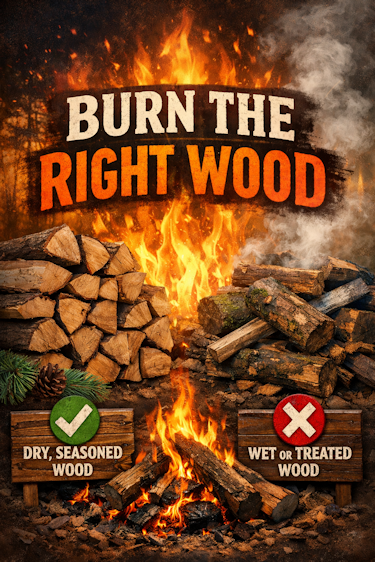 Burn the Right WoodIt always makes sense to burn clean, untreated wood. Wood must never contain contaminants such as plastics, rawlplugs, painted finishes, or treated timber. These materials release toxic gases when burned and significantly increase the risk of chimney fires.